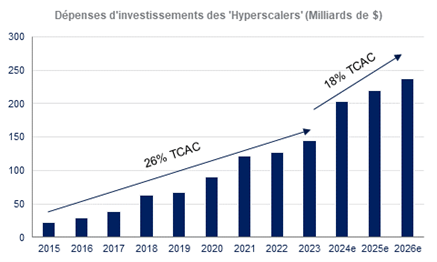 * Hyperscalers (plus grands fournisseurs de cloud public) : Microsoft, Alphabet, Amazon, Meta.