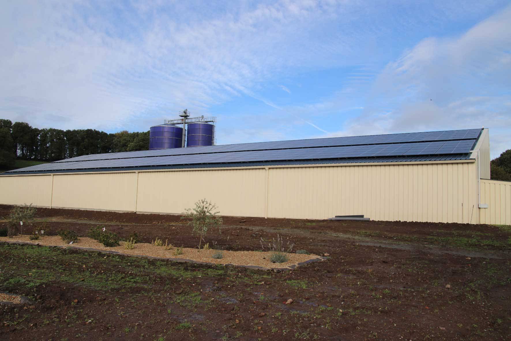 En 2020, les éleveurs construisent de leurs mains un nouveau hangar pour stocker du matériel et décident de couvrir la toiture avec 600 m² de panneaux photovoltaïques. La production d’énergie est vendue à Enedis, via un contrat de reprise établi sur 20 ans. L’objectif de ce nouveau projet est de financer les échéances de ce nouveau bâtiment.