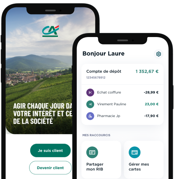 (1) Téléchargement et accès gratuits à l’application Ma Banque, hors coûts de communication selon opérateurs. L’utilisation de l’application nécessite la détention d’un terminal de communication compatible avec accès à Internet et l’abonnement au service Crédit Agricole En Ligne (service facturé selon le barème tarifaire en vigueur dans votre Caisse régionale).