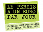 (1) Offre réservée aux personnes physiques de 15 à 25 ans à la date de signature du contrat de formation avec l'auto-école dans les conditions fixées par la réglementation. Pour le prêt destiné à financer une formation initiale, le dispositif s’applique pour toute inscription au permis de conduire A1, A2 ou B. Le prêt prévu pour financer une formation initiale ne peut être attribué qu'une fois à un même bénéficiaire. Pour le prêt destiné à financer une formation complémentaire, le dispositif s’applique au candidat au permis déjà bénéficiaire du dispositif "permis à un euro par jour" pour le financement d’une formation initiale et ayant échoué à l'épreuve pratique de l'examen du permis de conduire. Il ne peut être attribué qu'une seule fois à un même bénéficiaire et pour une même catégorie de permis de conduire. Il suffit de choisir une auto-école conventionnée, c'est à-dire qui a passé une convention avec l'État et a adhéré à la Charte qualité des écoles de conduite.