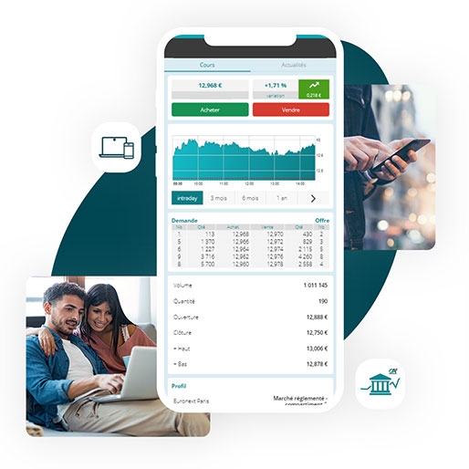 Suivez facilement vos investissements ainsi que le cours des actions et réalisez vos opérations d’achat ou de vente