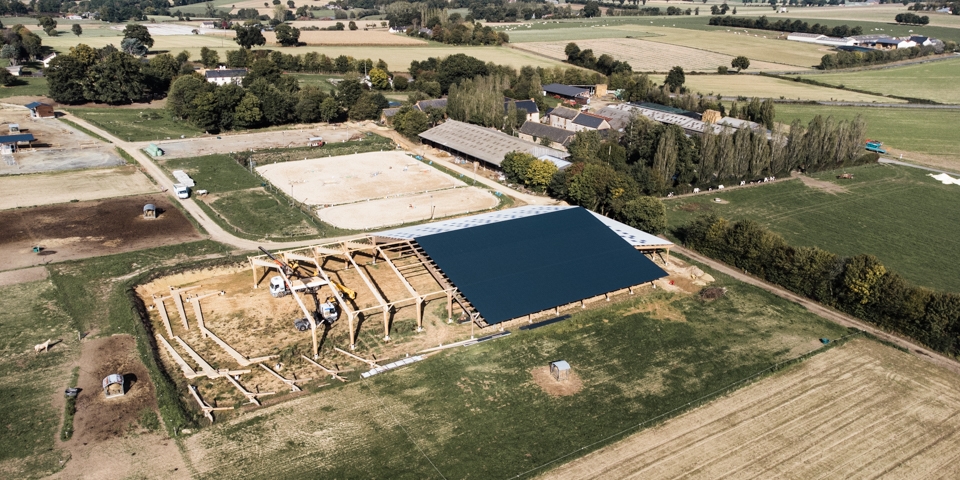 Des panneaux solaires sur les toits du centre équestre de la Touche Bouilly.