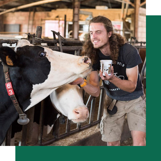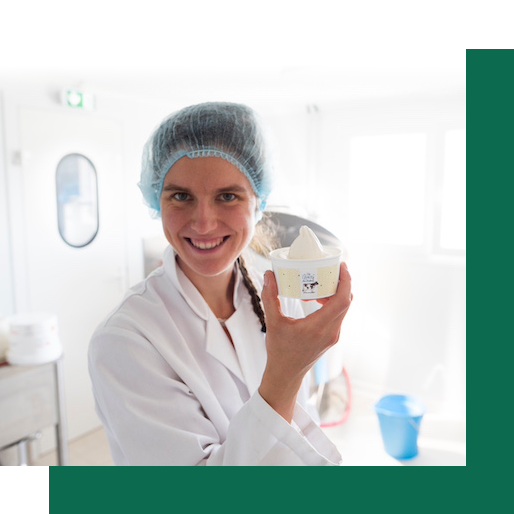 Dans cet esprit d’indépendance, en 2022, notre nouvel atelier de glaces nous permet de valoriser notre lait, en diversifiant nos savoir-faire. Fort de ces valeurs, nous choisissons des produits de qualité pour proposer des glaces locales, aux parfums délicieux."
