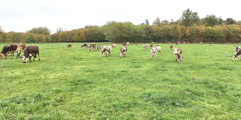 Au départ à la retraite de son père, Delphine Varaillon, jeune agricultrice de 30 ans, a repris l’exploitation de production laitière certifiée « Agriculture Biologique », depuis 2016, à Mareuil en Périgord, en Dordogne. Cette activité était une évidence pour cette jeune éleveuse passionnée qui a baigné dans cet univers depuis sa plus tendre enfance. Sa vision engagée du métier est tournée vers le respect du bien-être de ses vaches laitières de race Normande. Delphine leur propose un menu varié composé principalement d’herbes de ses pâturages, de foin et d'enrubannage récoltés au fil des saisons.