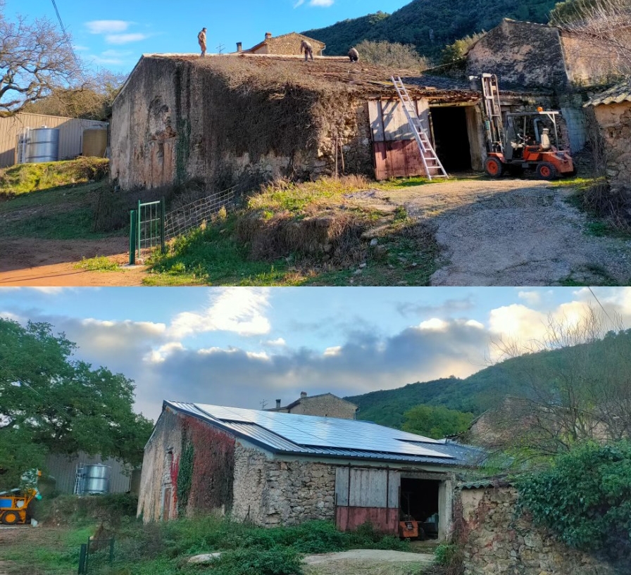 Construction d'un hangar de 400m2 entièrement recouvert de panneaux photovoltaïques, pour abriter les cuves permettant des économies d'énergie et couverture en panneaux photovoltaïque de la bergerie d’une surface de 150m2.